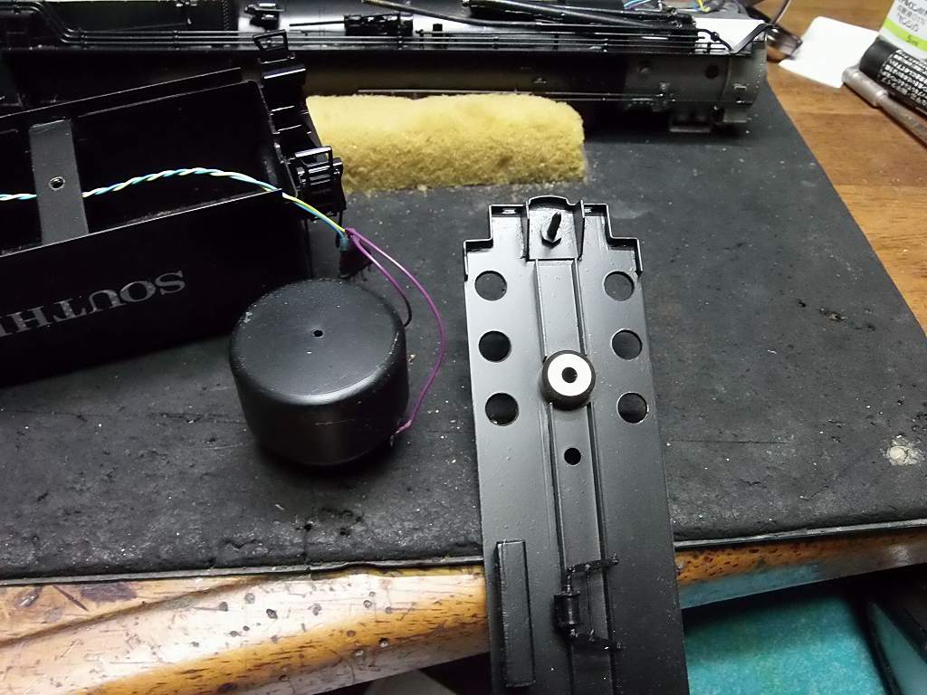 フロントスピーカー、ZIMO LS-26、 モーターの上に装着