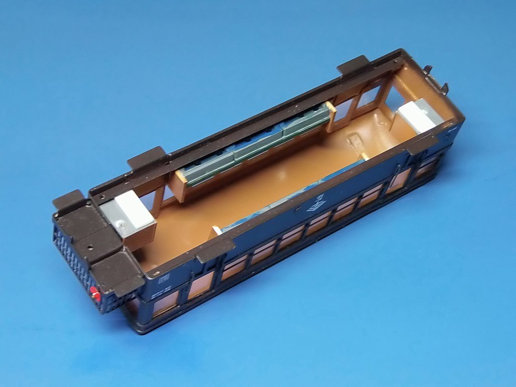 室内灯は、TOMIX 0794 白色に黄色塗布 走行時常時点灯