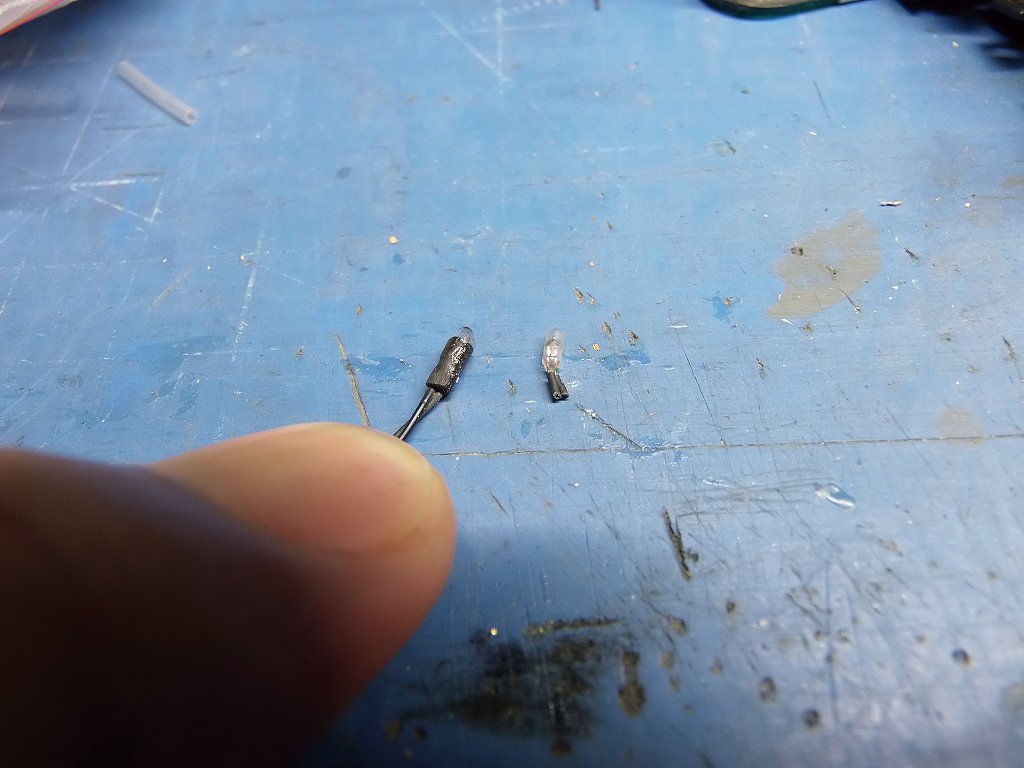 写真右 ご臨終です、で、写真左の手持ち在庫、ムギ球を使用しました