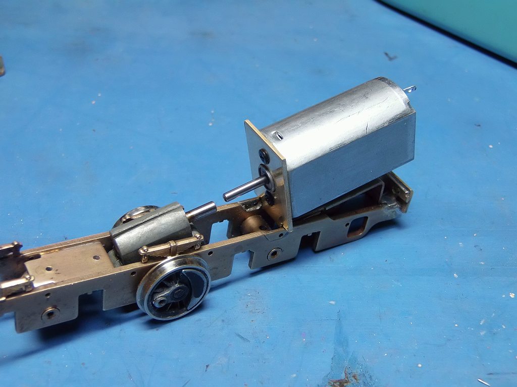 モーターを載せて、回して見ると第一動輪のクランクピンがクロスヘッドと干渉、